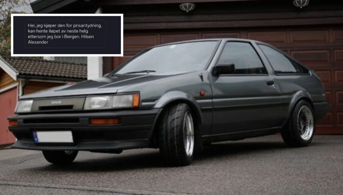 В 2023 году Йон Фредриксен разместил объявление о продаже Toyota Corolla GT 1985 г. в. Вскоре с мужчиной связался Александр из Бергена. В личных сообщениях на профильном сайте он написал владельцу: «Здравствуйте, беру за указанную цену. Могу забрать в течение следующих выходных, так как живу в Бергене. С уважением, Александр».