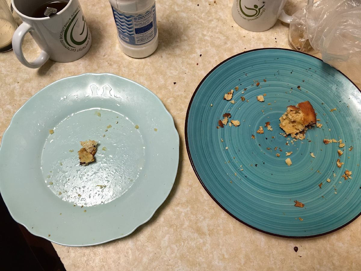 - Это немного сырничка, немного пирога и червячок. Ты же худеешь, вот, мы о тебе заботимся. - То есть, это вы мне оставили? - Да. Знаешь, есть такая народная мудрость: не доедай последний кусок. Всё равно не наешься, а посуду мыть придётся. - Но знаешь ли ты ещё другую мудрость? Не готовь, чтобы не оставался последний кусок. Всё равно не наешься, а посуду мыть придётся. Так и живём. Тарелки дождались мытья.