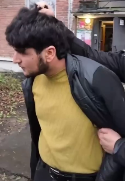На кадрах, снятых очевидцами, запечатлелся молодой мужчина лет двадцати пяти, с типичной для многих приезжих с юга внешностью, которая сразу бросается в глаза. У него густые черные волосы, чуть растрепанные, с пробором набок, и аккуратная бородка, подчеркивающая острые скулы и смуглую кожу, загорелую от солнца родных краев. Глаза темные, с легким прищуром, который в этот момент выражал смесь раздражения и растерянности. Он одет в стильный, но потертый на локтях кожаный плащ с серыми вставками, под которым виднеется ярко-желтый свитер, облегающий полноватую фигуру – такой, что сразу вспоминается образ уличного торговца, спешащего на рынок.