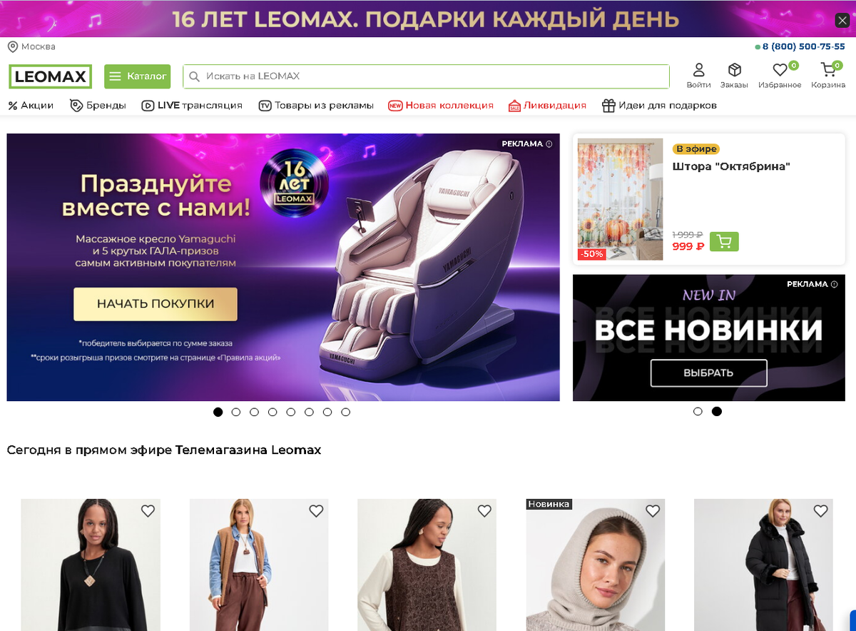 Заключение: Leomax — это не просто телемагазин, а целая онлайн-платформа, где покупки можно совершать легко и удобно. Сервис радует разнообразием категорий товаров — от товаров для дома до косметики и одежды. Есть возможность оформить заказ с доставкой на дом, а также воспользоваться регулярными акциями и скидками. Стоит отметить, что процесс заказа понятен даже новичку в онлайн-шопинге.