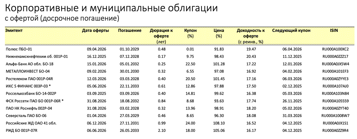ОФЗ и корпоративные, замещающие (USD и EUR).