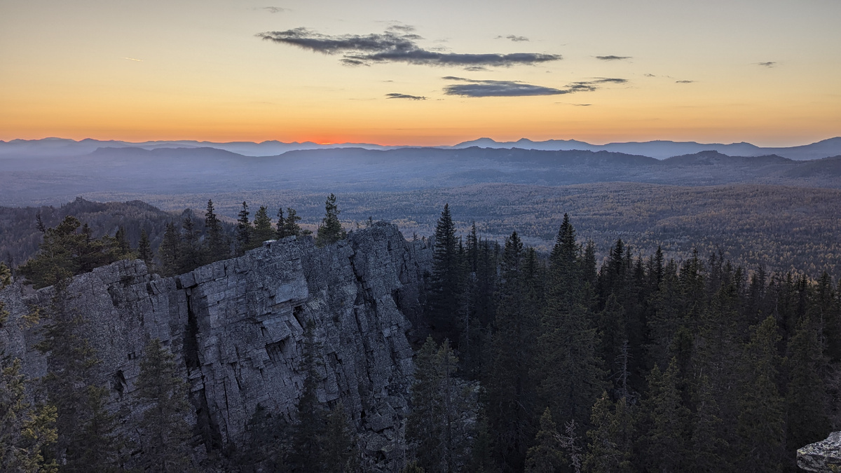 Начат подъем на хребет в 6 вечера из В.Авзян. Ночёвка в 9 на первой смотровухе.