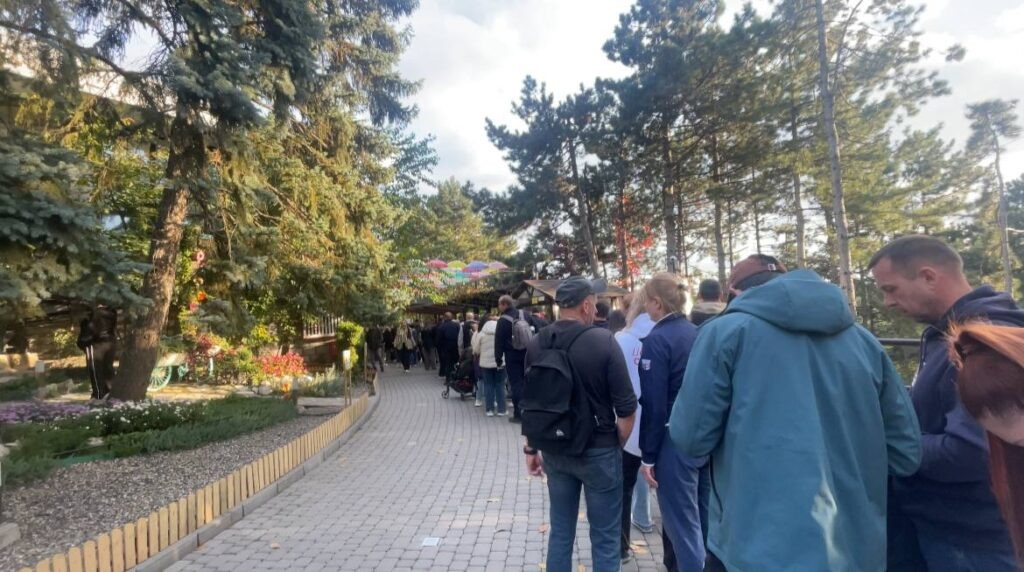 Первым делом, конечно, канатка на Машук. Очередь, как водится, огромная, но двигалась она подозрительно бодро. То ли из-за горного воздуха, то ли из-за обещания увидеть панораму золотых осенних деревьев. Стояли мы минут двадцать, и это время прошло почти незаметно.