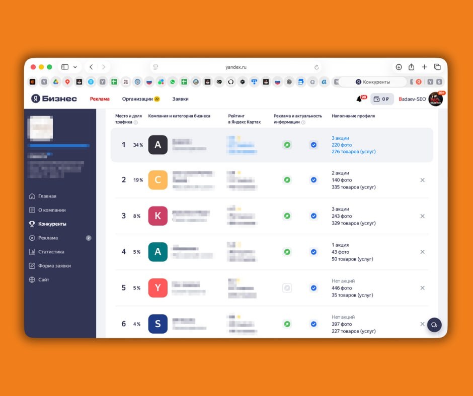 На что обращать внимание собственнику в разделе "Конкуренты" 🏆 в кабинете Яндекс Бизнес