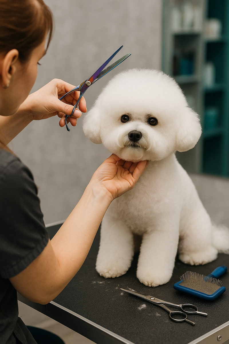 Болонка — это не просто пушистая собачка с умными глазами, а настоящее солнце в доме. Она всегда радостна, любит внимание и обожает быть в центре событий. Но чтобы ваш питомец выглядел как из глянцевого журнала, ухоженно и опрятно, важна регулярная стрижка. В этой статье расскажем, зачем болонке груминг, какие бывают стрижки и как проходит процедура в салоне PetsLab. Шерсть бишон фризе и болонского бишона не линяет, а растёт бесконечно, как человеческие волосы. Без стрижки собака быстро теряет аккуратный вид: шерсть спутывается, образуются колтуны, которые мешают коже дышать. К тому же, густой слой шерсти способен скрывать раздражения, укусы или мелкие воспаления. Поэтому регулярная стрижка — не просто вопрос красоты, а важная часть здоровья питомца. Оптимально приводить бишона к грумеру каждые 4–6 недель. Даже если вам кажется, что шерсть ещё не выросла — специалист очистит, расчешет и придаст ей форму, чтобы собака всегда выглядела ухоженно. Между визитами желательно регулярно расчёс