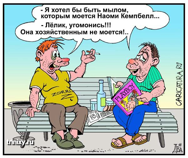 Идея у него рождается не из абстрактного образа, а из словесной формулы, которая моментально визуализируется в комичной ситуации. Например, шутки вроде: «Раздвинуть рот на ширину приклада» или о мужчине, который «не должен поднимать на женщину руку, для этого у него есть другие части тела» — это готовый сценарий, который рисунок просто доводит до абсолюта. Он берёт суть и показывает её без прикрас.