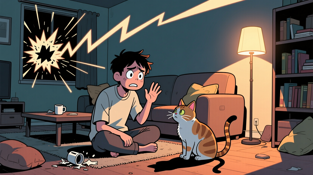 - Они советовали: "Заведи кота, чтобы списывать на него все странные звуки". Когда в соседней комнате что-то грохнуло, мы с котом переглянулись...