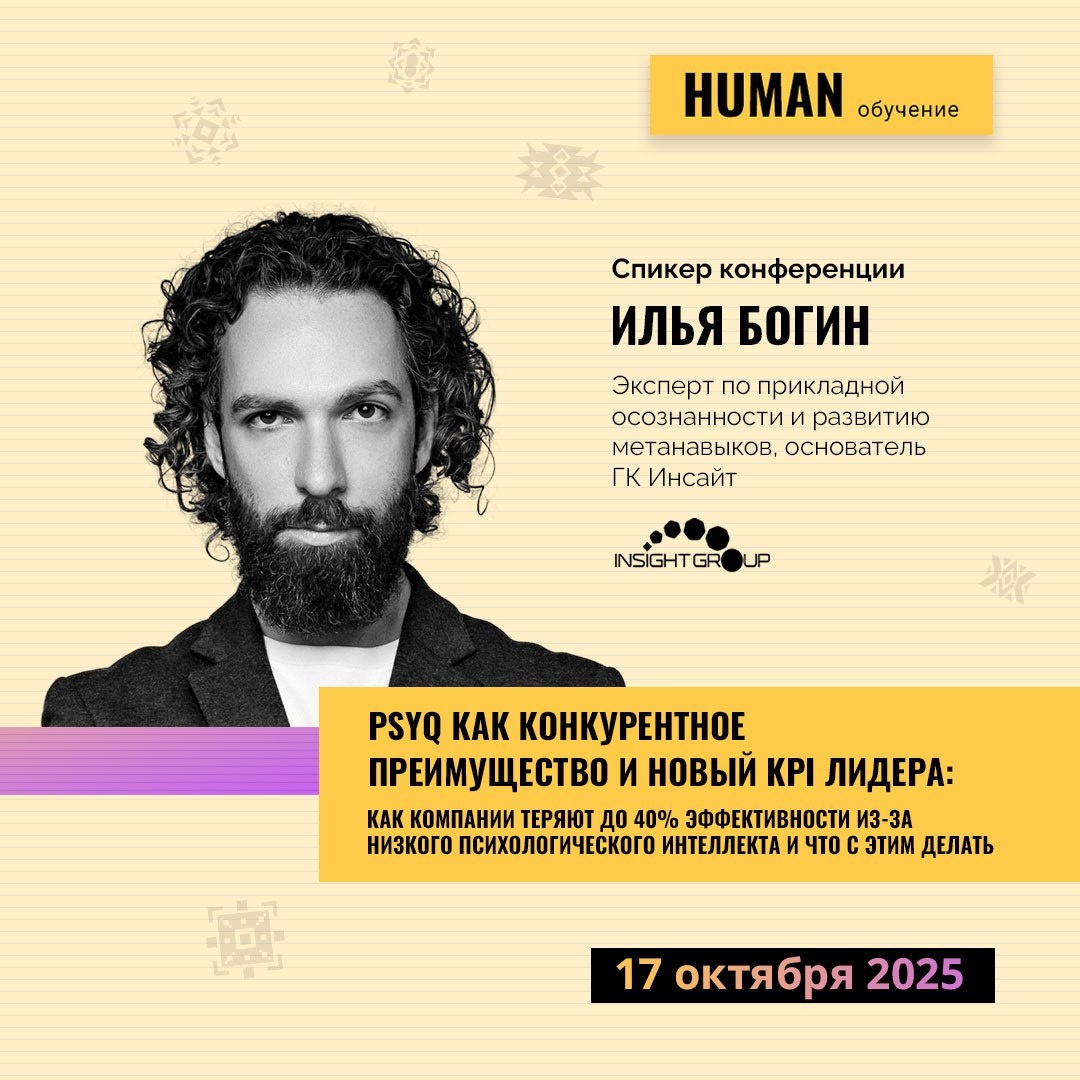 Встречаемся в 12:15 в зале «ПАЛЬМИРА II» на мощном выступлении Ильи Богина: «PsyQ как конкурентное преимущество и новый KPI лидера: