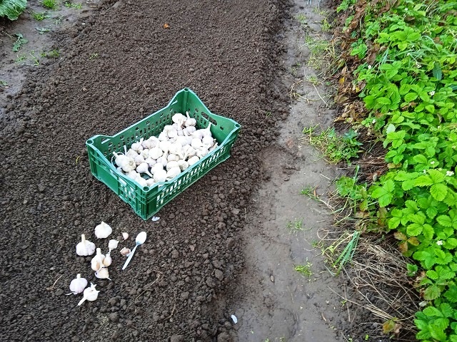 Чеснок лучше всего сажать за 2 - 3 недели до наступления заморозков, для моего региона (Марий Эл), это примерно середина октября. С учетом погоды конечно, в дождь высаживать чеснок, да еще в глинистую почву, хоть и удобренную перегноем, еще та незадача.
