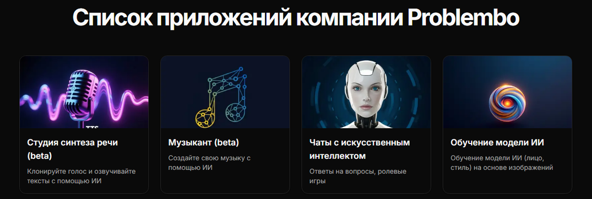 Problembo.app представляет собой перспективный AI-сервис, ориентированный на русскоязычную аудиторию. Сервис демонстрирует: