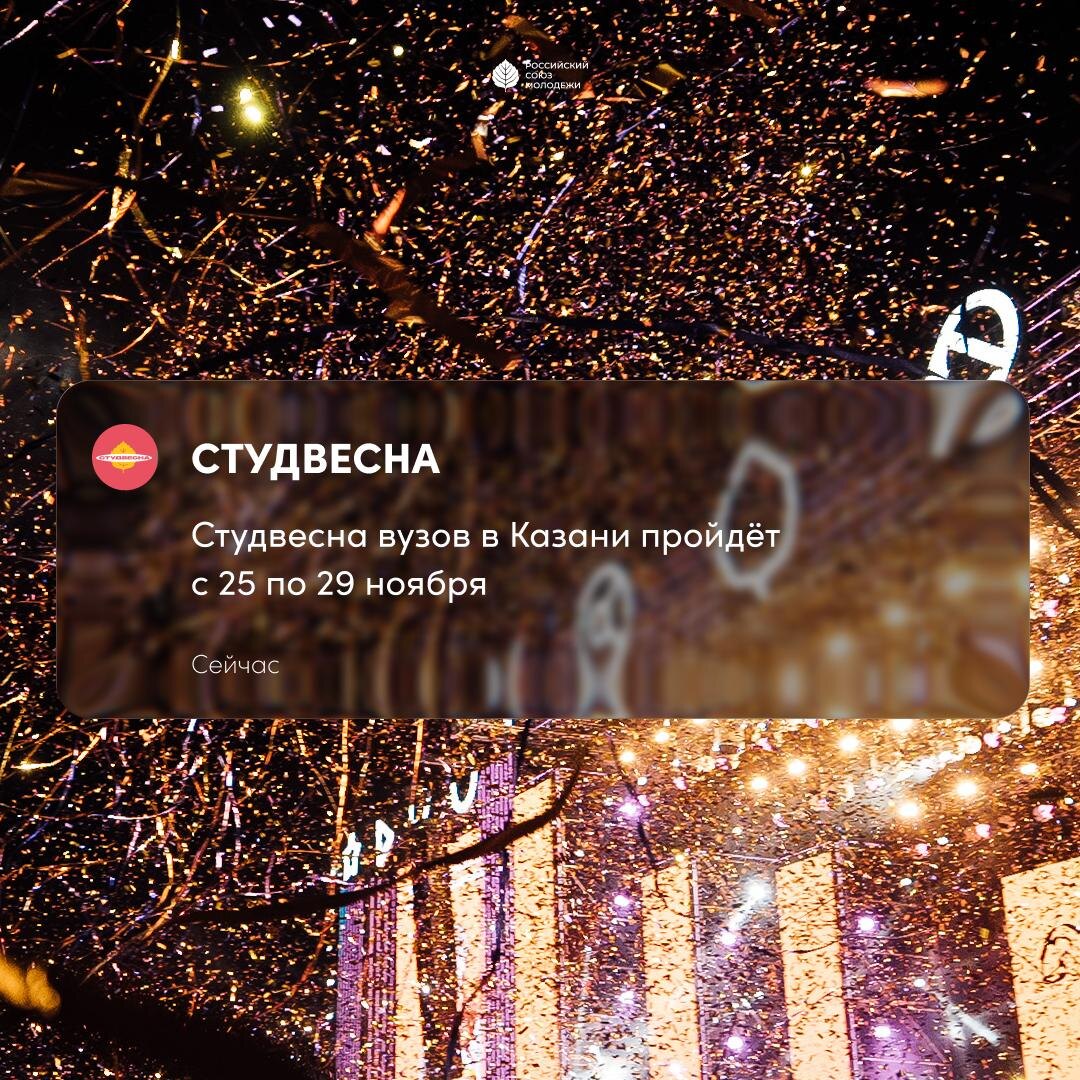Студенческой весне в Казани быть! ⚡️ XXXIII фестиваль «Российская студенческая весна» для студентов вузов пройдёт с 25 по 29 ноября. Столица Татарстана объединит более 2 тысяч представителей молодёжи со всей России Уже ждём это яркое событие и студенческий контент! ➡️ НОС: Телеграм | ВКонтакте | Платформа | МАХ