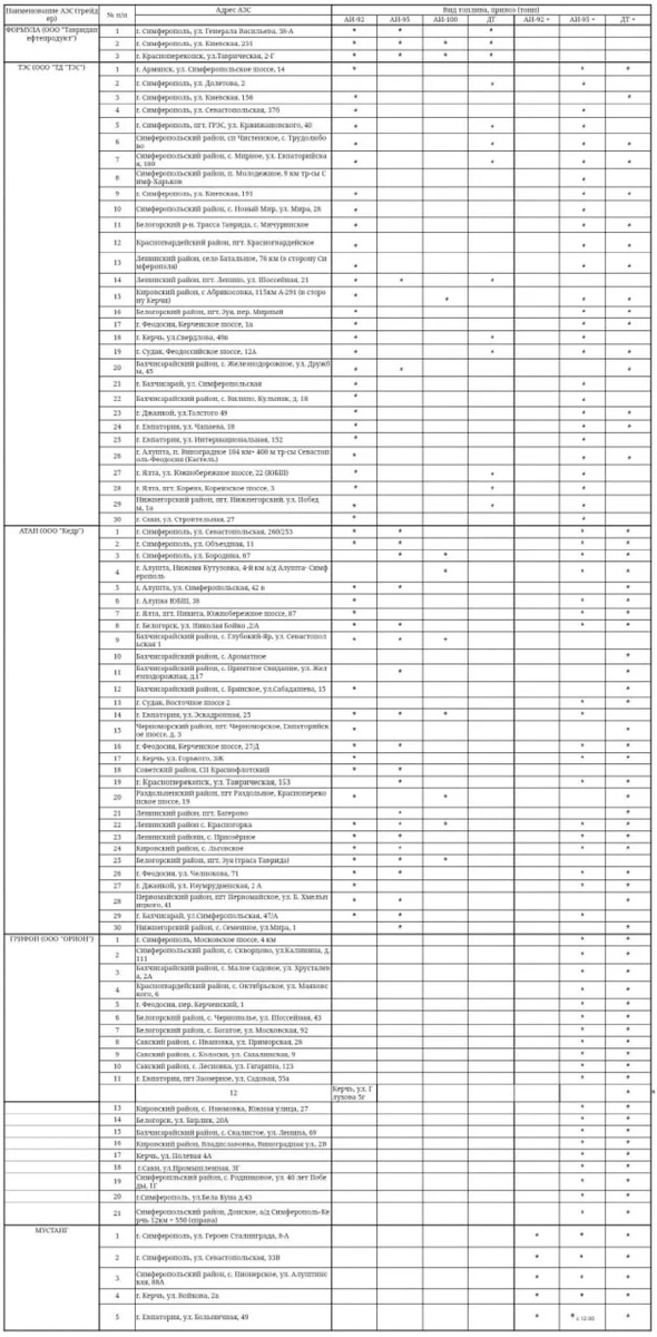 Где сегодня можно заправиться в Крыму Перечень адресов крымских АЗС, где сегодня имеется топливо в свободной продаже. Поставки ведутся по распоряжению Министерства топлива и энергетики Республики Крым. Информация обновляется ежедневно, передает КерчьФМ... подробнее Подписывайся на КерчьФМ.РФ @kerchfm
