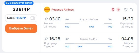 ✈️Москва - Подгорица (Черногория), туда и обратно с пересадками в Стамбуле, за 33800 рублей
