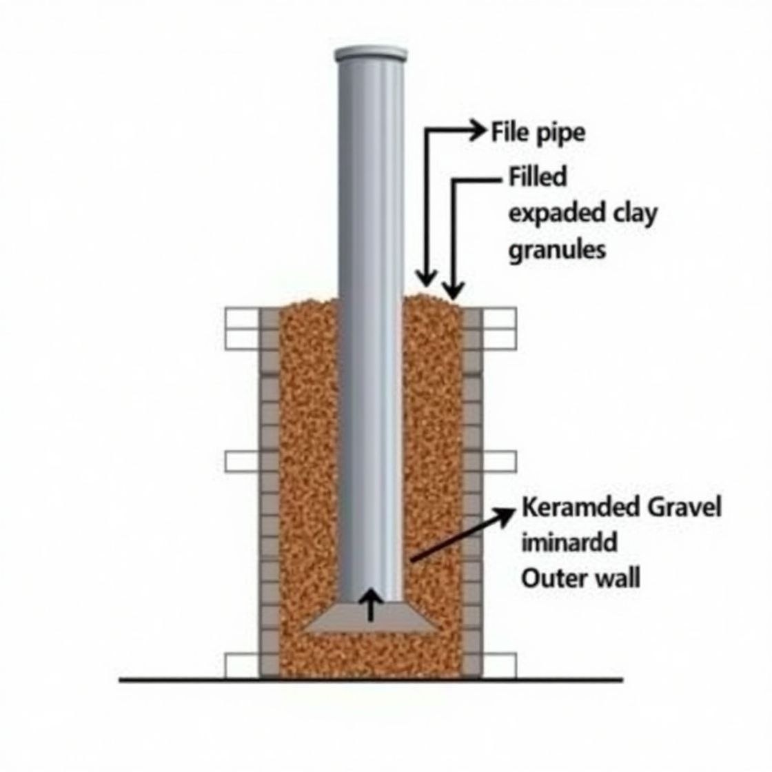 Керамзитовый гравий применяется в дымовых трубах как утеплитель и засыпка, особенно в конструкциях типа «сэндвич» и шахтных канальных систем.
