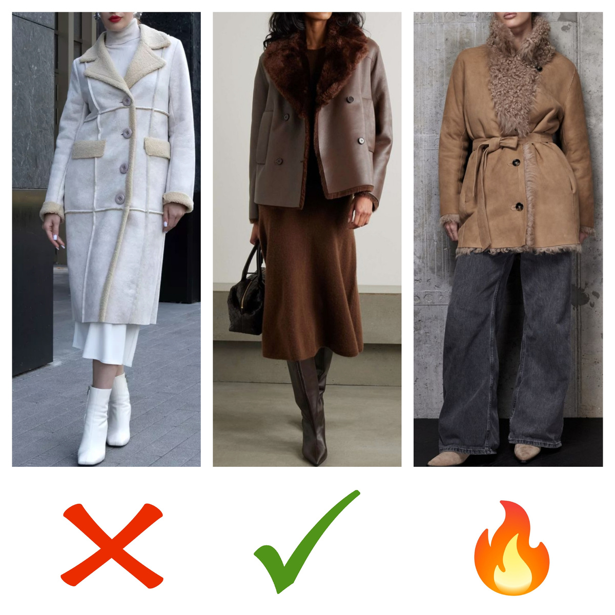 ❌Устарело: Хорошей заменой традиционной шубе служит меховое пальто, но речь идет о современных базовых вариантах, а не о коротких и узких моделях прошедших сезонов.