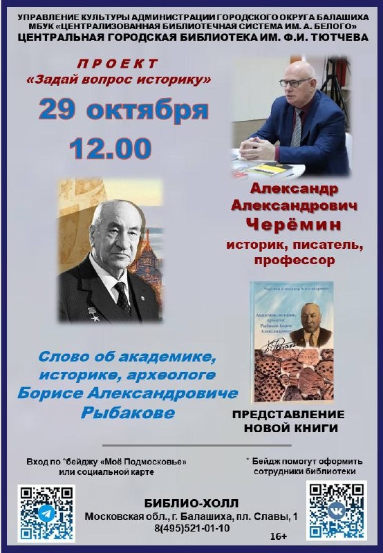 Презентация новой книги «Академик, историк, археолог Рыбаков Борис Александрович». В монографии представлены источники и документы, которые ранее никогда не были опубликованы. В книге 466 страниц и более 800 изображений и фото. Твёрдый красочный переплёт, книга прошита, бумага офсетная № 1. Книга проиллюстрирована – карты, фото предметов быта, портреты, гербы, монеты, архитектурные сооружения, документы и страницы неопубликованных научных работ учёного. Собранные в личном архиве академика Бориса Александровича Рыбакова, дана биография учёного и приведены неопубликованные труды историка. Также показано, как шла история, как наука, в Российской империи, Союзе Советских Социалистических Республик и в Российской Федерации. Посвящается выдающемуся историку, археологу, педагогу Борису Александровичу Рыбакову. М., 2025, ISBN 978-5-521-24700-4 Книга писалась 5 лет!