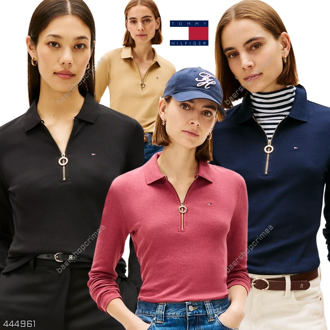 Лонгслив-поло на молнии хлопковый (женский раздел)