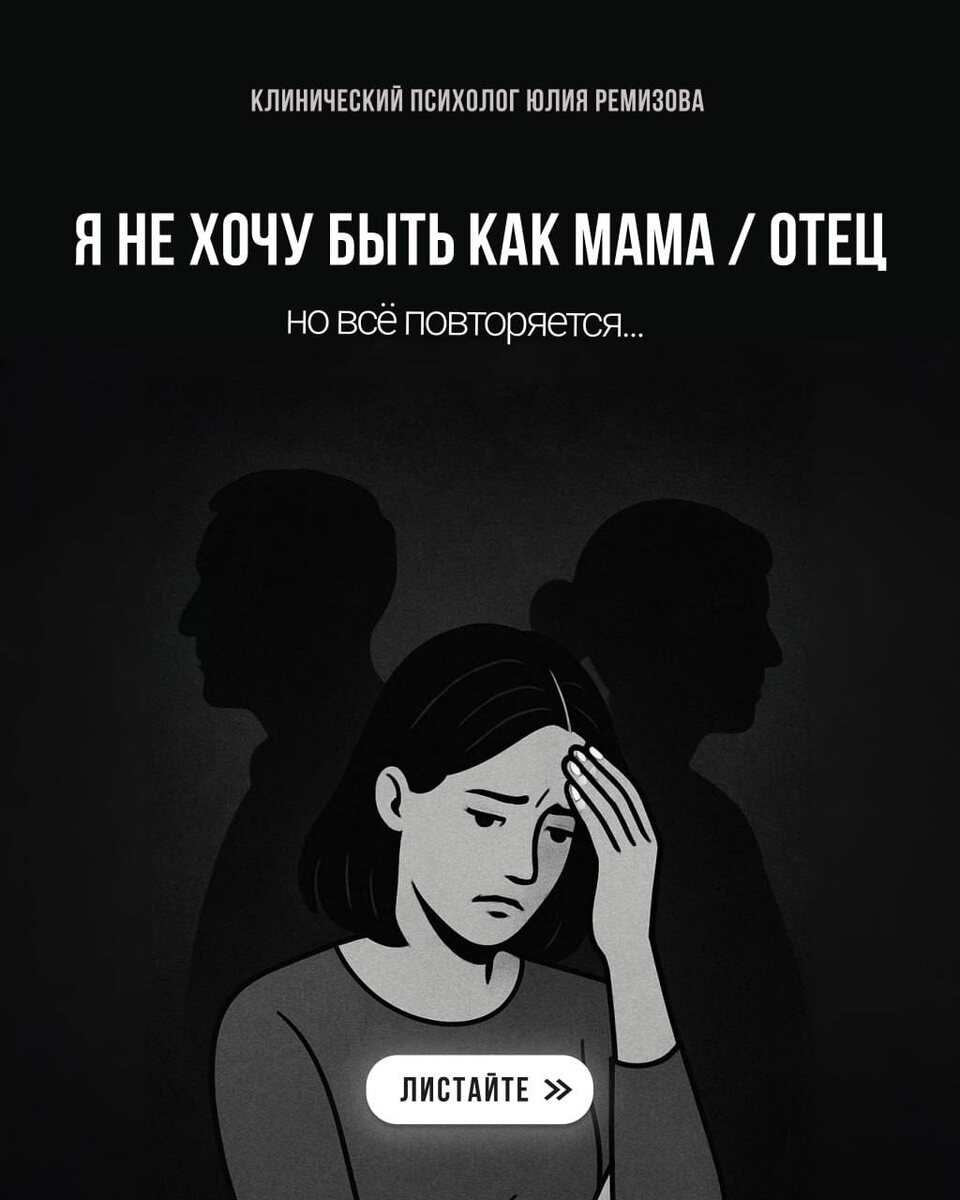 Возможно, Вы давали себе обещание: «Я никогда не буду вести себя как мои родители». Но однажды ловите себя на той же фразе. В той же реакции. В той же роли. Почему так происходит — и можно ли это остановить?