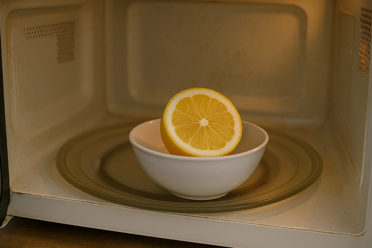 Если бы микроволновка могла говорить - она бы уволилась первой. Честно. На работе в ней за день греют всё: супы, котлеты, рыбу, чай, кто-то даже кашу пролил и просто закрыл дверцу, будто ничего не было. Воняет так, будто там завелось новое блюдо - “аромат офисного понедельника”. Но убирать никто не хочет. Все заняты, все спешат. А вот я - тот самый умник, который нифига не делает, зато пишет статьи в Дзен. Вообщем, этот умник я. ⸻ Начал я думать, как это всё отмыть. Химией? Да ну, потом три дня дышишь этим запахом “морского бриза”. Просто водой - не оттирается. Попёр я, значит, по интернету искать народную мудрость. И что вы думаете? Да ни фига нового! Всё одно и то же: возьми лимон, налей воды, и твоя микроволновка станет чистой, как совесть в понедельник утром. Такое ощущение, что все друг у друга переписали. ⸻ Вот суть “чуда” Берём лимон, миску и воду. Режем лимон пополам, выжимаем сок в миску и кидаем туда половинки. Ставим в микроволновку на 3 минуты - и якобы пар с эфирными масла