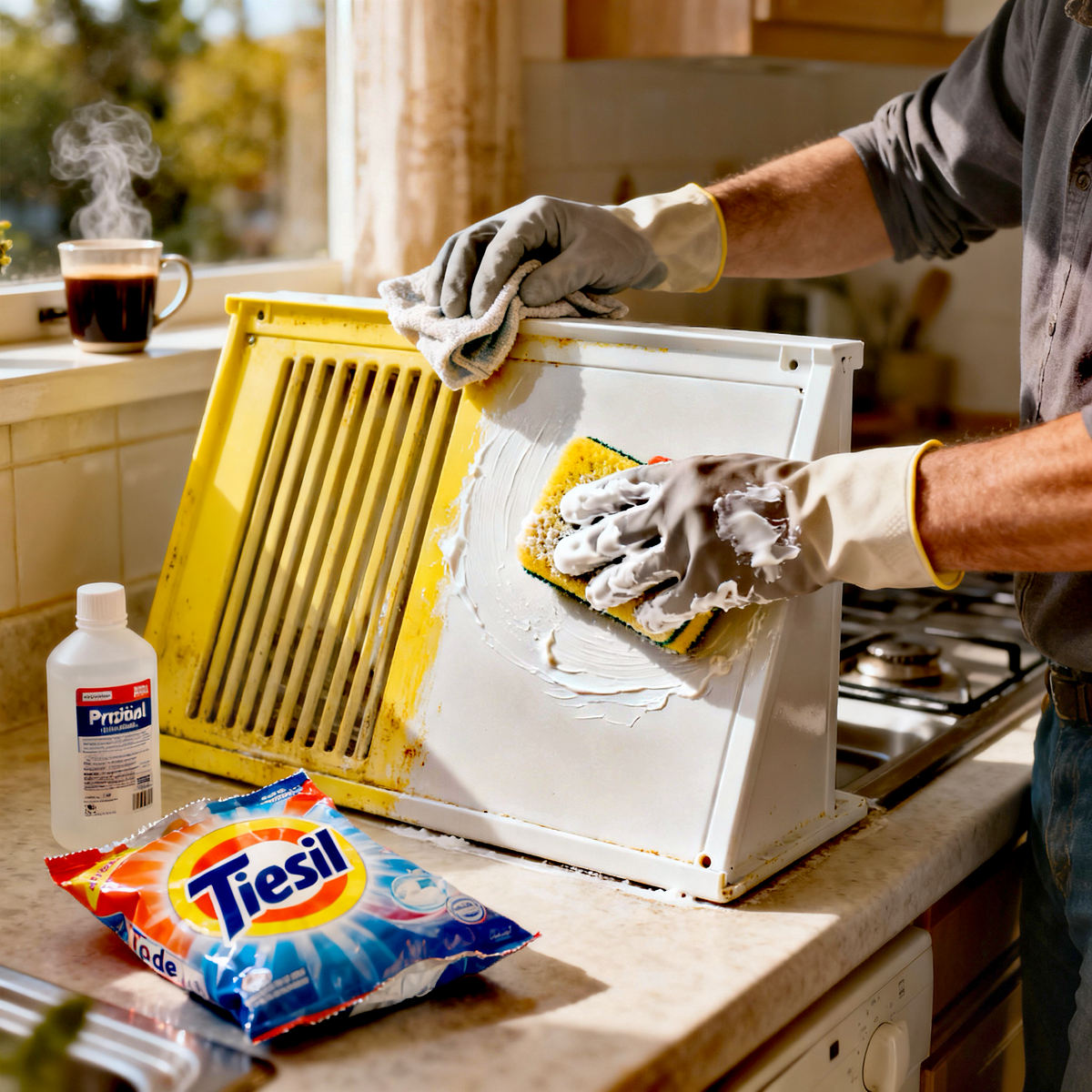 Стою я на кухне, пью кофе. И мой взгляд цепляется за пластиковую панель вытяжки. Она не просто грязная, она какая-то... желтая, старая. Как будто ей 100 лет. Настроение сразу портится. Любая, даже новая техника, с таким налетом выглядит убитой. Доставать химию из магазина не хотелось. Цены кусаются, а состав такой, что без противогаза не подойтишь. И тут я вспомнил разговор с одним знакомым. Он мне рассказывал, как они до блеска отмывали технику подручными средствами. Решил попробовать. То, что получилось, меня поразило. Вот этот «дедовский» способ, который обойдется вам рублей в 50. Что нам понадобится (все есть в любом магазине): 1. Спирт (обычный медицинский, самый дешевый). Можно заменить водкой, но жалко же. :) 2. Стиральный порошок (не гель, а именно порошок, с гранулами). У меня был обычный «Пемос». 3. Губка (жесткая, с абразивной стороной) и тряпка. 4. (Опционально) Зубная паста — для финального полира. Вот и всё. Никакой магии. Порядок действий (собрал как инструкцию в а