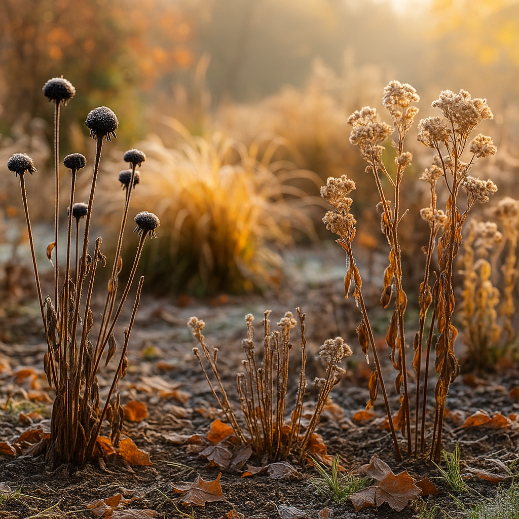 Каждую осень я наблюдаю одну и ту же картину: дачники с энтузиазмом берут секатор и «наголо» обрезают всё, что росло на клумбах и грядках. Земля остаётся голой, как после уборки урожая. Казалось бы, порядок! Но не всё так просто. За годы садоводства я поняла: стричь растения «под ноль» — значит отнимать у них естественную защиту. Сейчас расскажу, почему этого делать не стоит и какие есть разумные исключения. Осенью у многолетников жизнь не останавливается — просто замедляется. То, что над землёй кажется «засохшим», на деле играет важную роль. 💡 Я заметила: там, где оставляю растения «в шапке», весной земля рыхлая и влажная, а где вычистила — сухая, плотная, как бетон. У них листья — не просто украшение, а зимняя защита для почек возобновления. Срежете — рискуете потерять растение. Многие режут их слишком низко. Я оставляю пенёчки по 10–15 см. Они задерживают снег и не дают воде стекать прямо к корням. Эти красавцы особенно эффектны зимой, когда покрываются инеем. А если обрезать — вес