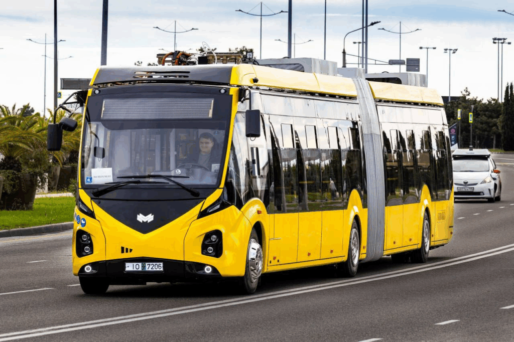 Необычный желтый электробус-гармошка появился на улицах Сочи. Машину особо большого класса привезли на курорт для участия в выставке конкурса профмастерства «Водитель года – 2025».
