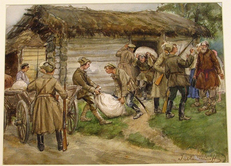 «Хлеб этот находится в руках деревенских кулаков и богатеев, в руках деревенской буржуазии. Сытая и обеспеченная, скопившая огромные суммы денег, вырученных за годы войны, деревенская буржуазия остаётся упорно глухой и безучастной к стонам голодающих рабочих и крестьянской бедноты <…>