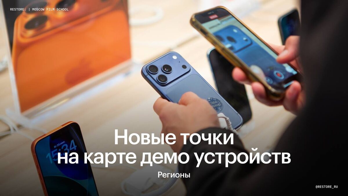 Мы расширили демо-зоны ✨ Теперь купить и протестировать новинки Apple можно в региональных магазинах сети. Смотрите список локаций на карточках и ищите там свой город. Ждем вас в restore: 🩷
