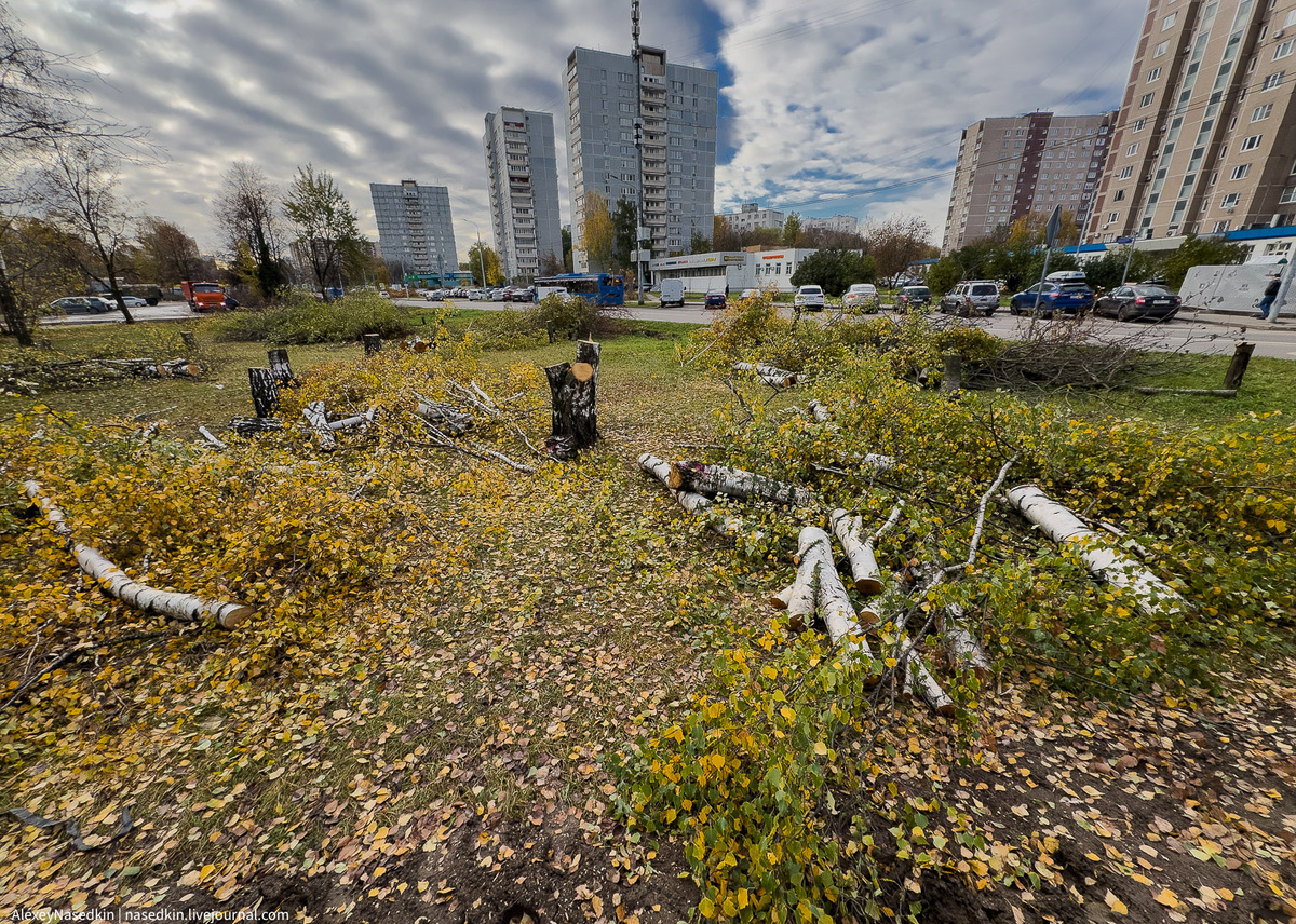 "По Малыгина идёт массовая вырубка деревьев. Жители сообщают, что информационных стендов нет, а под вырубку попали все деревья, включая рябину, которую можно было бы оставить до зимы для птиц. Что происходит в районе — пока неизвестно, но данный вопрос уже направлен в управу!"