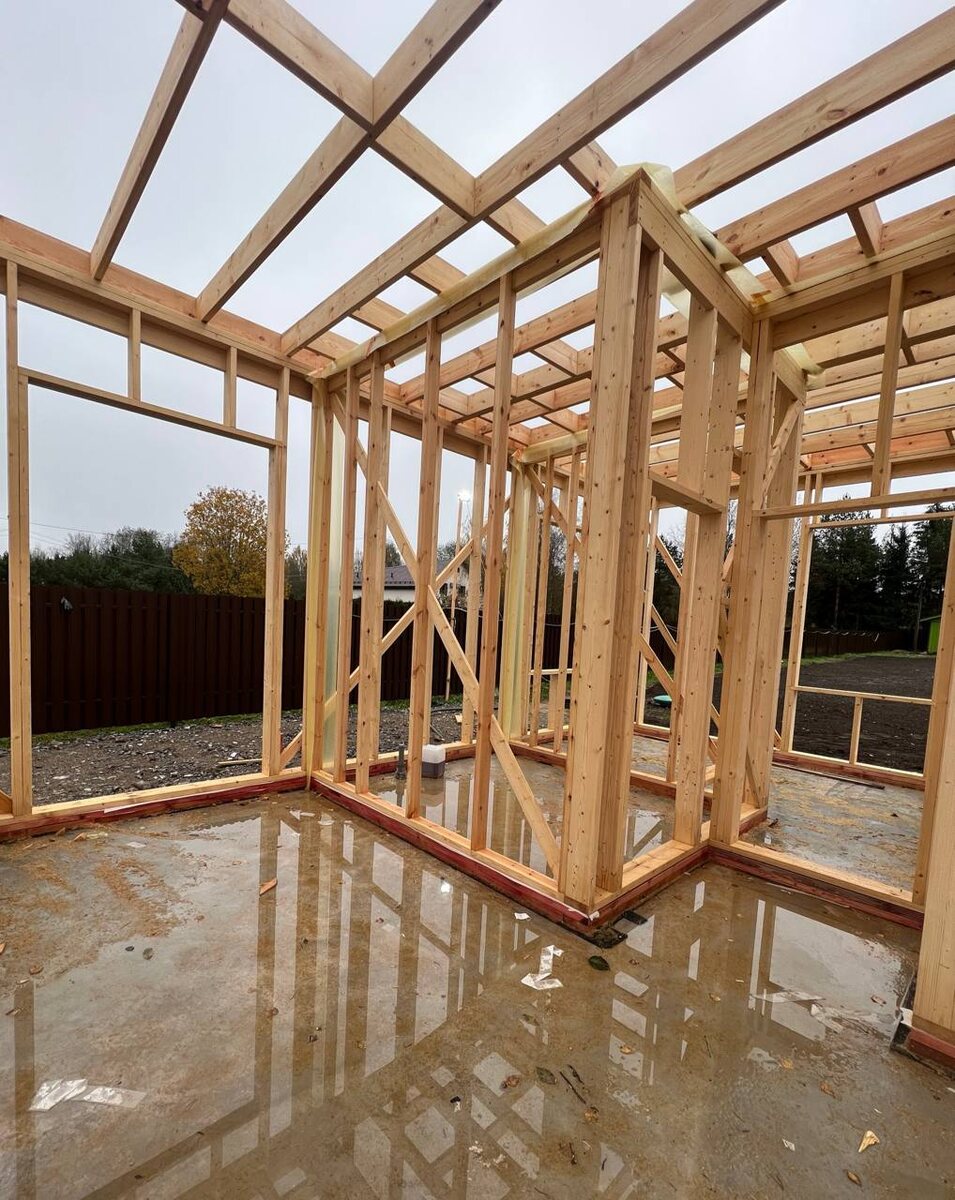✅Закончили возведение силового каркаса внешних стен и перегородок, приступаем к возведению стропильной системы.