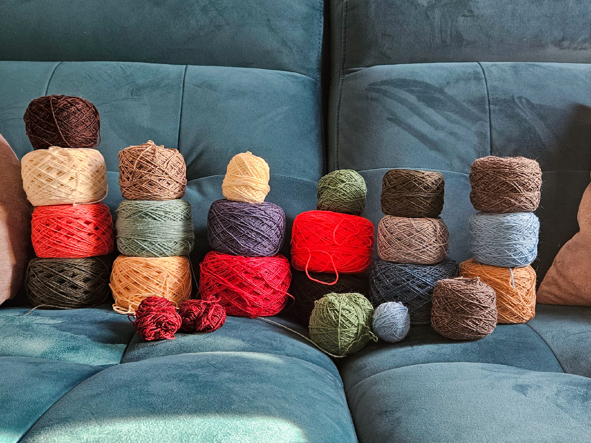 У каждой вязальщицы с течением времени и количеством выполненных работ, собираются остатки различной пряжи. Их можно использовать для мелких вещей, можно отдать подругам, но чаще всего они попадают в отдельную коробку и «живут» там годами. У меня тоже есть несколько таких коробок, но наконец-то пришел и их черед! Когда у меня есть свободное время, а такое бывает, как это не странно, я просматриваю фотографии вязанных работ, выложенных в интернете. Если работа меня заинтересовала, я сохраняю ее в отдельную папку. Какую-то идею я могу начать воплощать сразу, а что-то ждет своего часа. Заканчивая вязать «Меренгу», я открыла свою папку «Вдохновения» и заметила, что в ней много фото вещей, связанных из пряжи разной по цвету и составу. Так родилась ИДЕЯ! Несмотря на то, что у меня уже есть новый проект, желание связать новый жаккард меня не покидает! И я решила, что эта работа будет «для души», вязать буду не спеша и описания по нему не будет. Итак, планируется джемпер в технике пэчворк. Цве