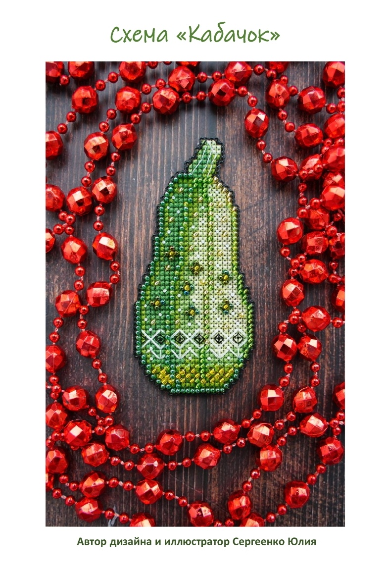 Пятым дизайном в СП "Со вкусом"-2 от Юлии Сергеенко я выбрала "Кабачок". Мне казалось он больше по крестикам чем предыдущие, но я ошиблась,он то же не большой. Размер в стежках: 24 на 52 крестика; Размер в см: 4,4 на 9,5 ( для Аиды 14 каунта); Палитра мулине ДМС ( 7 цветов); Бисер: Preciosa. По Саге: 585 крестиков, 124 стежка бэкстича, 46 французских узелков, 274 бисеринки( 967 по марафону крестиков). С каждым новым процессом в совместнике сборка материалов происходит все быстрее,некоторые цвета повторяются и ты скорее ориентируешься. Как и предыдущие разы нитки из моих запасов сама подбором близко по ключу. В "Кабачке" вообще самое маленькое количество цветов: пять для крестиков и два (черный и белый) для бэкстича. За первый день я отшила все крестики. В маленьких дизайнах очень удобно шить по цветам,это мое самое любимое. На следующий день выполнила бэкстич,накрутила французские узелки и пришила бисер,которого тут тоже не очень много. Если бы не мое желание фотографир