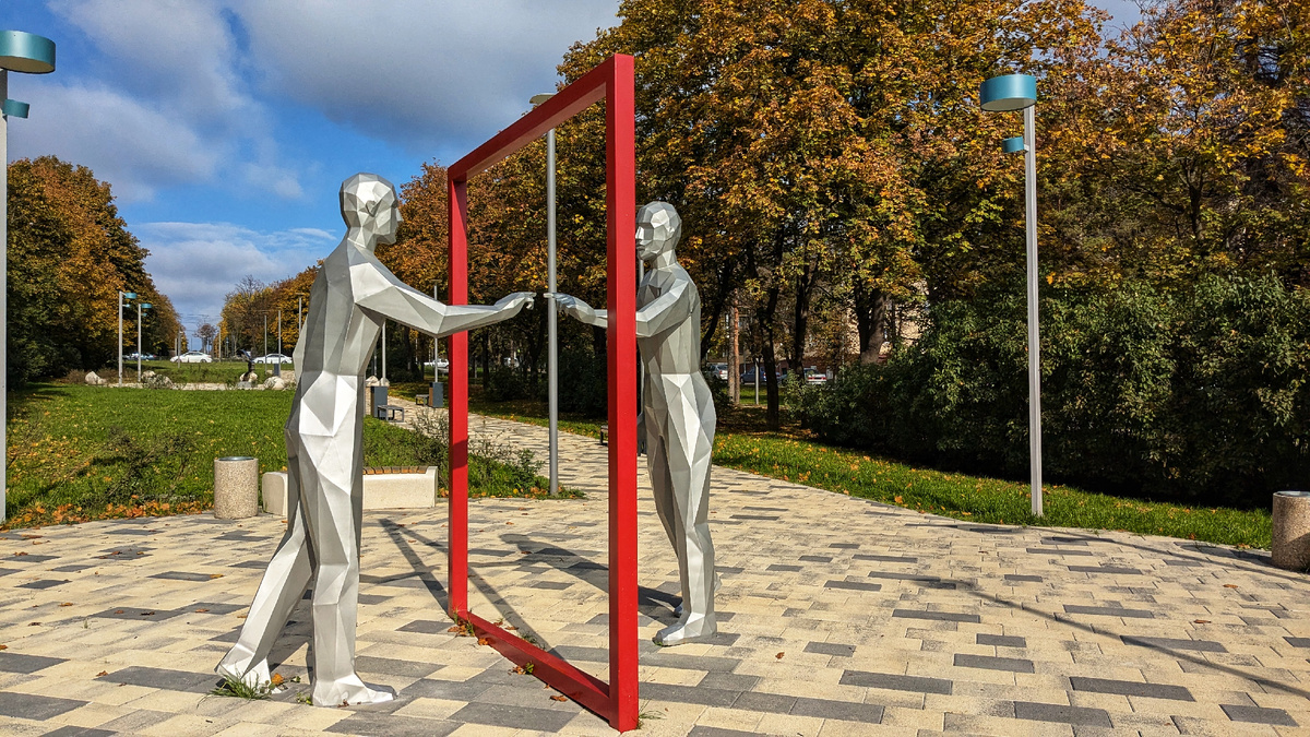 Друзья, приветствую вас на канале "Счастлива по собственному желанию". Продолжается наш замечательный отпуск в Ессентуках. Все статьи о Ессентуках я собрала здесь: Мы живем в новом ЖК по адресу ул. Буачидзе, д. 1. Район называется Заполотно, т.к. находится по отношению к центру и исторической курортной зоне за полотном железной дороги. Как я уже писала, до входа в Курортный парк нам идти 15 минут. Но в нашем районе есть и своя Курортная зона, в которой расположены большие санатории "Жемчужина Кавказа" и "Виктория". Парк санатория "Виктория" является местной достопримечательностью и открыт для всех желающих. Улица Буачидзе тоже очень интересно благоустроена, посередине разбит сквер с дорожками и городской скульптурой. По этому скверу мы и решили прогуляться в направлении Виктории. Эти фигуры я уже размещала раньше в одной из статей. Интересная идея, мне кажется. А это бегунья на утренней пробежке. Скамейки или шезлонги для лежания - но очень красиво смотрятся среди осенних листьев. Вооб