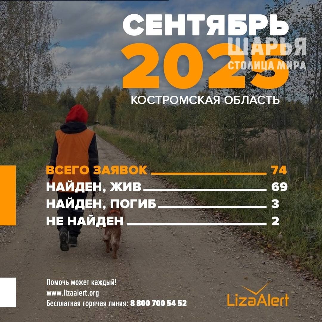 Поисково-спасательный отряд «ЛизаАлерт» Костромской области представил статистику поисков за минувший сентябрь.