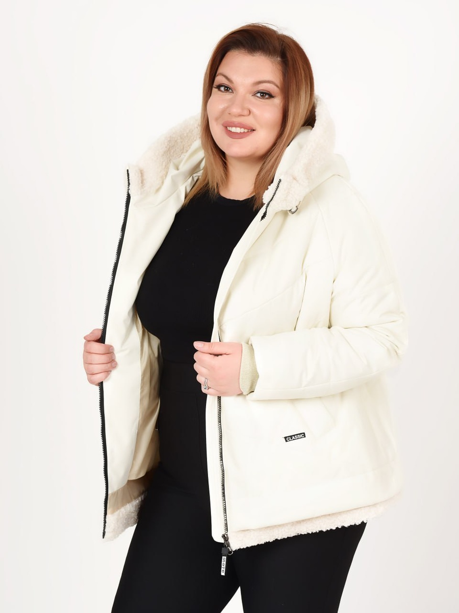 Короткая демисезонная куртка УК 687 с белоснежной отделкой из эко-меха – отличный выбор для элегантного женского образа на каждый день