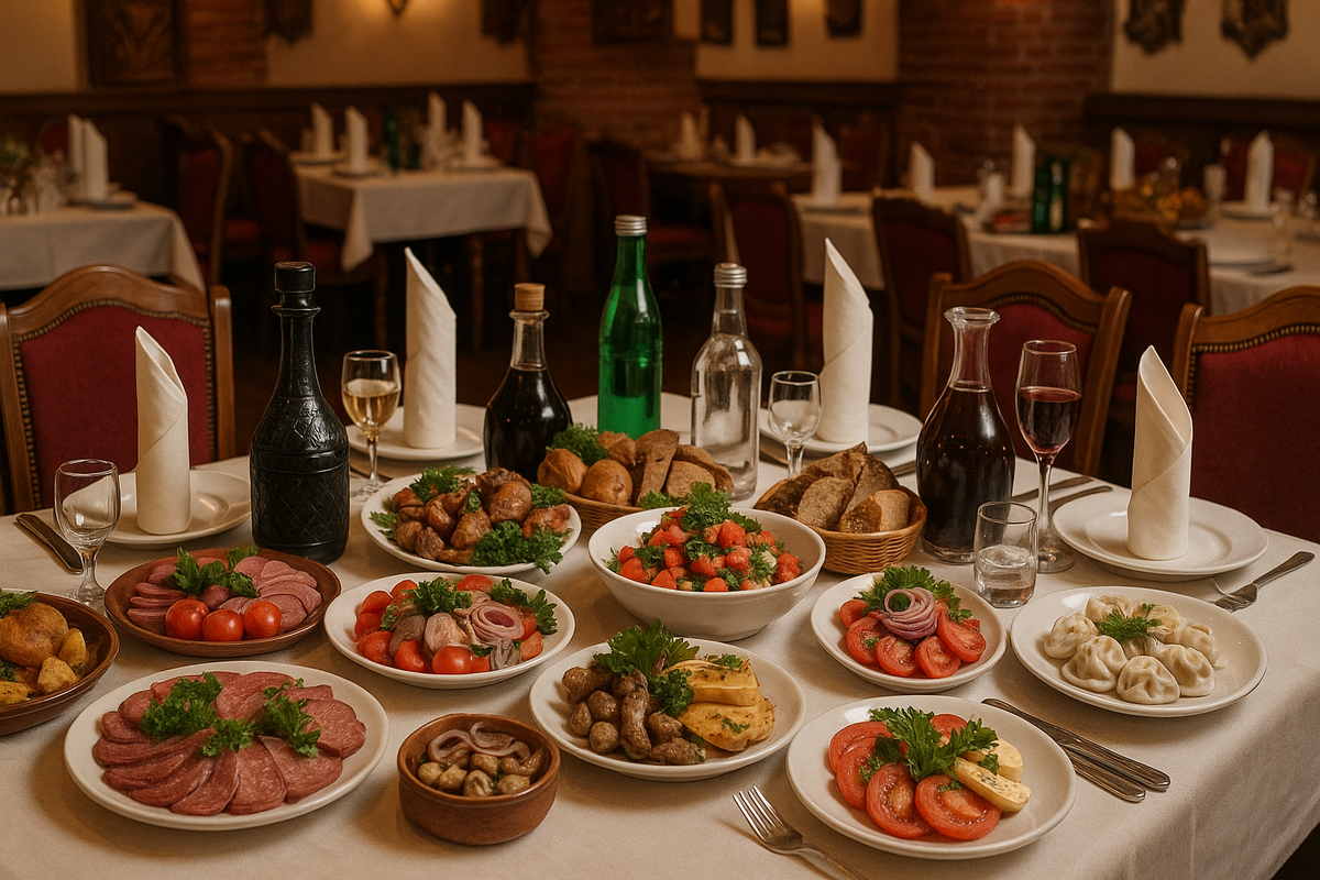 - За час до застолья — плотная еда. Каша, макароны, картошка, мясо. Всё, что долго переваривается.