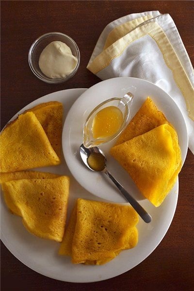 Выложить начинку (сыр, ветчина). Сложить блинчик пополам. Готовить ещё пару минут чтобы сыр расплавился.