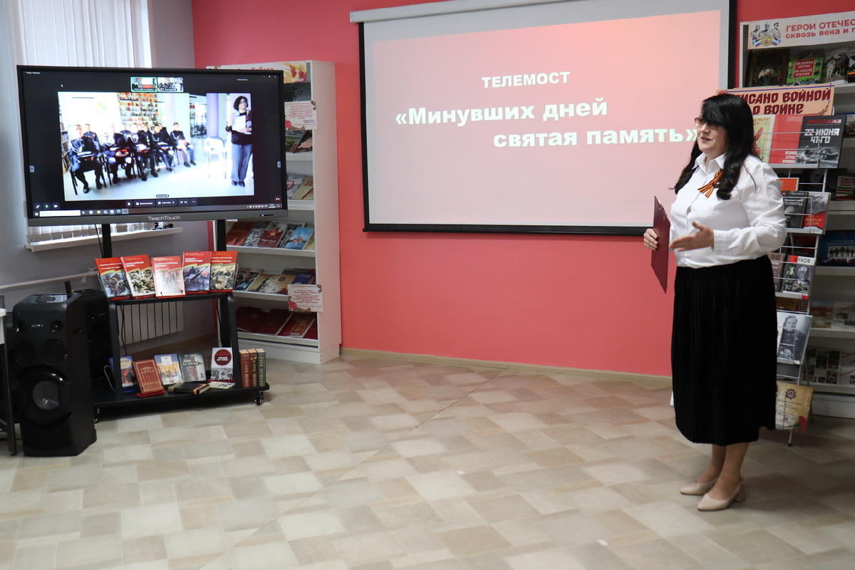 16 октября прошел патриотический телемост «Минувших дней святая память…». Мероприятие, посвящённое 80-летию Победы в Великой Отечественной войне, связало Центральную городскую модельную библиотеку «Библиогород» в Саранске и модельную библиотеку-филиал №4 им. Ю.В. Бондарева в Волгограде. В аудиториях присутствовали кадеты лицея №26 (г. Саранск) и обучающиеся Волгоградского кадетского корпуса Следственного комитета РФ им. Ф.Ф. Слипченко (г. Волгоград). Наши коллеги из города-героя Волгограда познакомили участников телемоста со славными боевыми подвигами участников Сталинградской битвы. Выступление Анны Владимировны БАРБОЗА, заместителя директора Централизованной системы городских библиотек г. Волгограда, стало живым и пронзительным свидетельством мужества, которое навсегда останется в наших сердцах. Также в рамках телемоста прошла презентация книг, посвящённых беспримерному подвигу героев Сталинградской битвы, которые представила Лёля Владимировна НИКОЛАЕВА, ведущий методист Центра по из