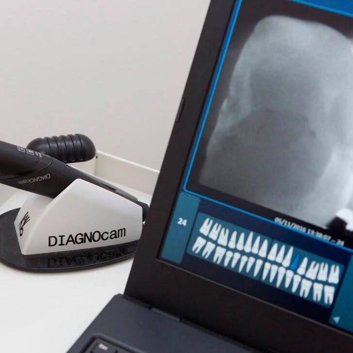 Скрытый кариозный процесс – как распознать?🤔 ⠀ Скрытый кариозный процесс может быть на визуально здоровой поверхности зуба, где нет полости или намека на разрушение тканей зуба. ⠀ Не смотря на то что зуб не имеет визуальных признаков поражения кариесом, кариозный процесс может быть настолько глубоким, что для лечения потребуется не только пломбирование, но и удаление нерва (депульпация ).🧐 ⠀ Для диагностики скрытого кариозного процесса необходимы дополнительные методы исследования: ⠀ ✔️Рентген - диагностика 📸 ⠀ ✔️Использование специального прибора для диагностики скрытых полостей (DIAGNOcam). ⠀ При использовании лазерной диагностики ( методика трансиллюминации) зубная эмаль пропускает излучение, как стекло, а кариозные ткани поглощают больше света и приобретают темныи цвет. ✅ KaVo DIAGNOcam позволяет определить местоположение и глубину кариозного дефекта без использования рентгеновского излучения. ⠀ ☑️Отсутствие рентгеновского излучения позволяет проводить диагностику пациентам с р