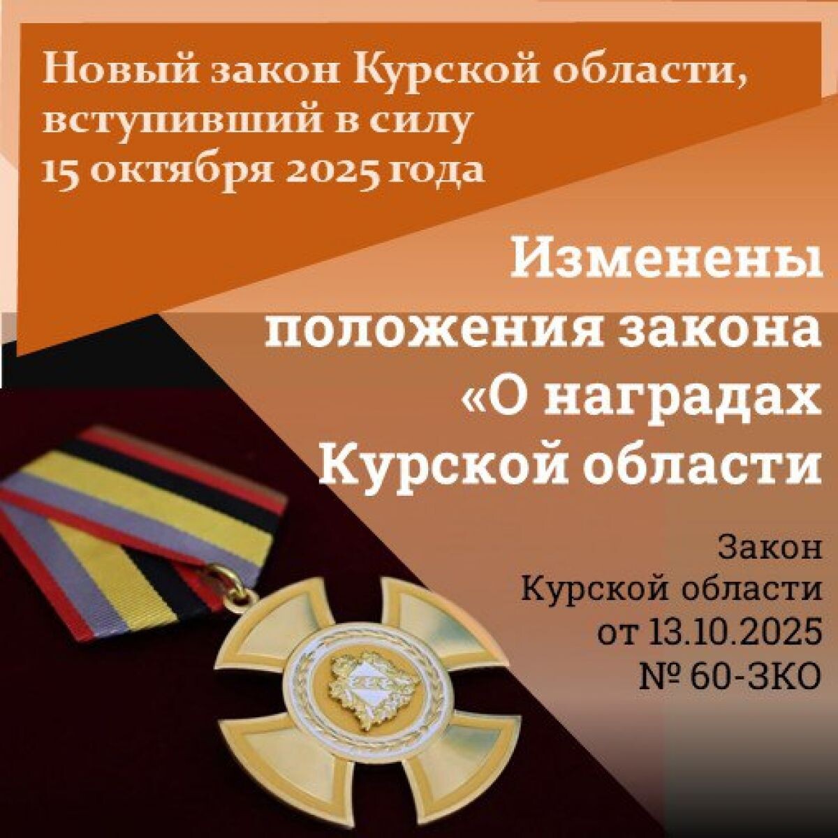 Депутаты Курской областной Думы поддержали инициативу главы региона Александра Хинштейна об изменении закона о госнаградах. Теперь награждение нагрудным знаком «За верность долгу и мужество» и присвоение почетного звания «Почетный гражданин Курской области» могут быть произведены посмертно, пояснили в пресс-службе регионального парламента. Также установлены основания для лишения наград Курской области, в их числе — осуждение за любое умышленное преступление, присвоение статуса иноагента, получение иностранного гражданства или вида на жительство в недружественной стране, увольнение со службы по дискредитирующим основаниям.