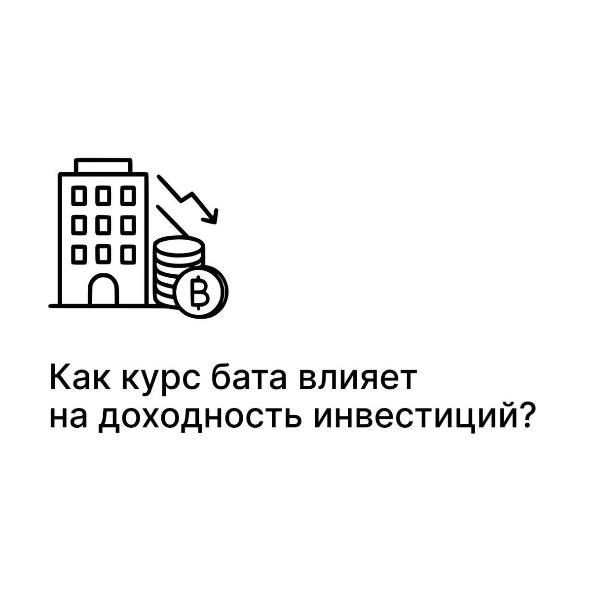 Как курс бата влияет на доходность инвестиций Инвестиции в недвижимость в Таиланде приносят доход в батах, но большинство покупателей считают прибыль и расходы в другой валюте — рублях, долларах или евро. Поэтому колебания курса бата напрямую влияют на реальную доходность. Рассказываем, что происходит, если бат укрепляется или ослабевает и как это отражается на доходе. Когда бат укрепляется: ⬆️Доходность растет. Арендная плата, которую платят арендаторы в батах, становится дороже при пересчете в рубли или доллары. Например, при доходе в 30 000 бат в месяц прибыль с курсом 1 бат = 2,0 рубля на руки вы получаете 60 000₽, а при курсе 1 бат = 2,5 рубля — 75 000₽. Разница — +25% без изменения арендной ставки. ⬆️Стоимость объекта в валюте инвестора тоже увеличивается. Квартира за 5 млн бат при курсе 2 рубля за бат стоит 10 млн ₽, а при курсе 2,5 — уже 12,5 млн ₽. ⬆️При этом расходы растут, ведь коммунальные платежи, фонд ремонта, налоги, обслуживание управляющей компании оплачиваются в