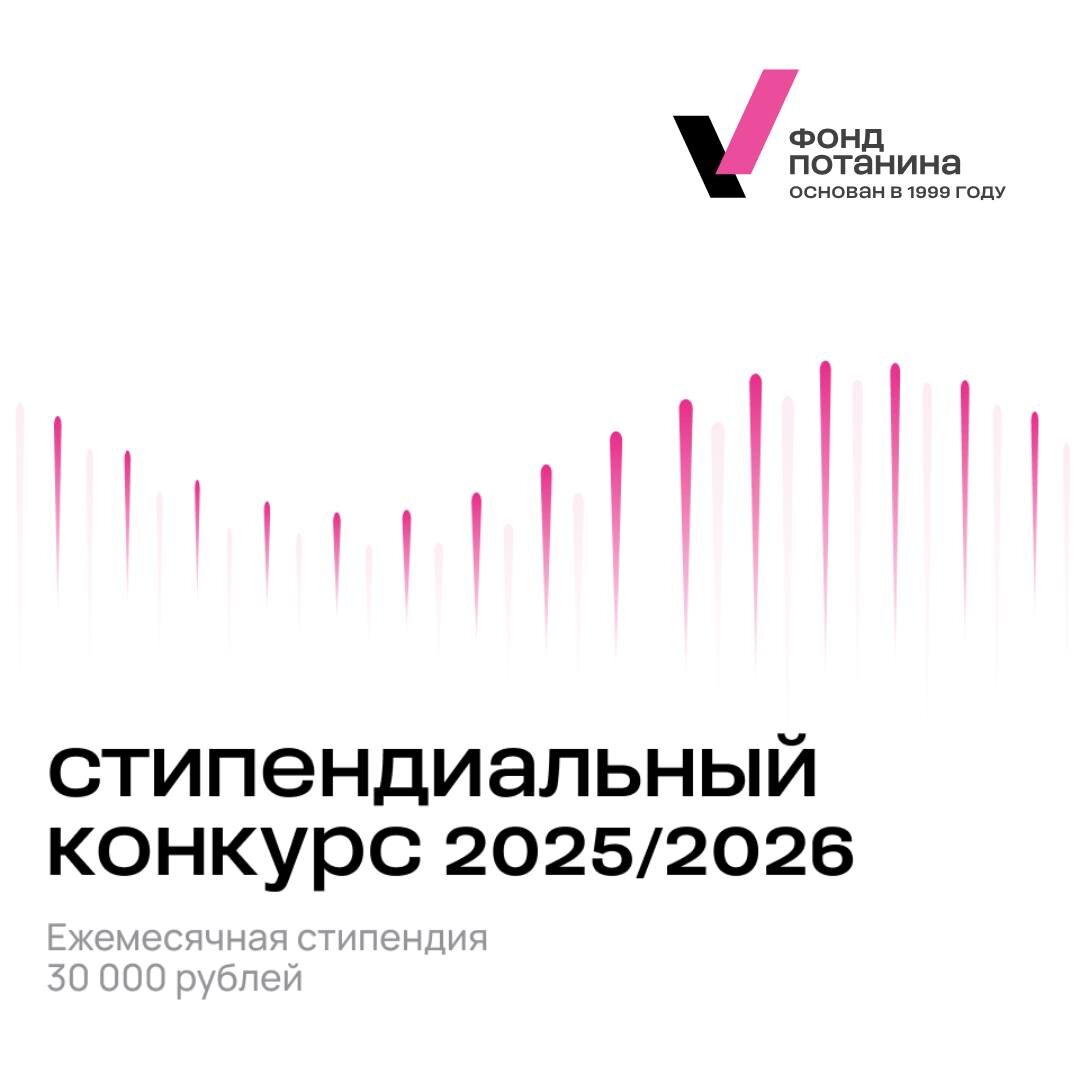 Открыт приём заявок на стипендию Фонда Потанина Магистранты МГЛУ могут подать заявку на стипендиальный конкурс Фонда Потанина и выиграть ежемесячную стипендию 30.000 рублей! Участники: студенты очной магистратуры Дедлайн: 17 ноября 2025 Первая онлайн-консультация: 17 октября (пт), 15:00 (мск). Подробнее 🔗 Информация о конкурсе