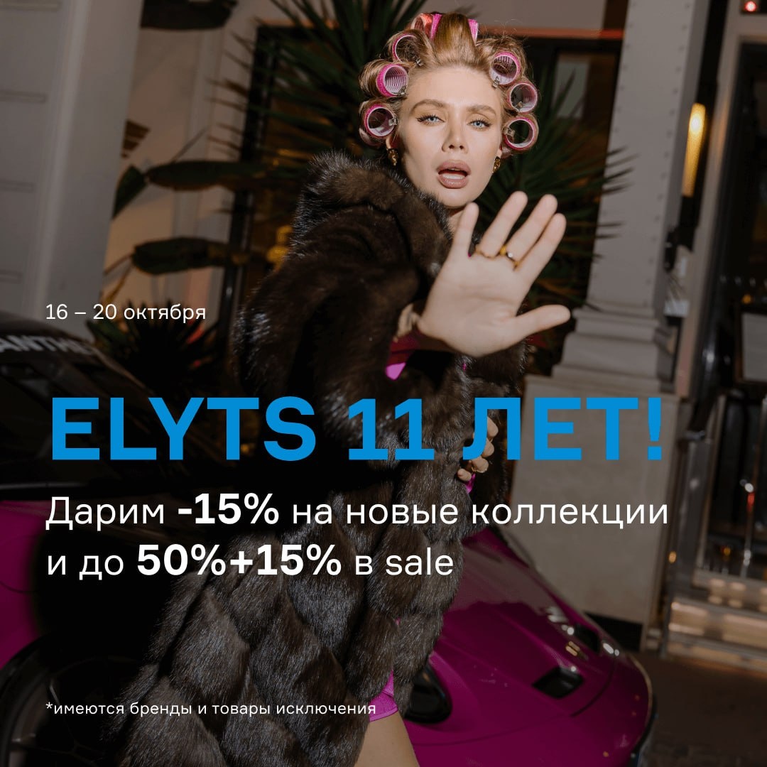 Уже 11 лет Elyts вдохновляет на стиль и красоту! Мы создаем современный диджитал-универмаг с любовью к моде и заботой о каждом клиенте. Наши ценности — надежность, безупречная репутация и доверие, которое мы бережно храним. Мы гордимся многолетним партнерством с культовыми брендами и рады превращать ваш шопинг в настоящее удовольствие! Спасибо, что выбираете Elyts! В честь дня рождения дарим скидки: -15% на новинки и до 50%+15% в Sale только 5 дней