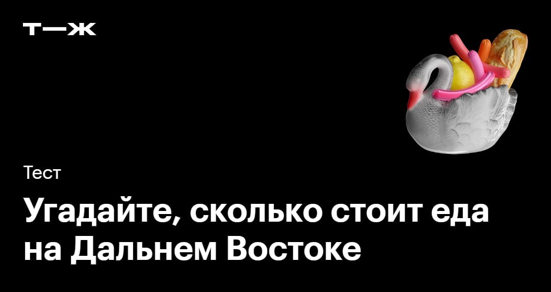 Задача: купить в магазине хлеб, колбасу и что-нибудь к чаю. Вопрос: сколько потребуется денег? Легко прикинули в уме? А теперь представьте, что вы на Дальнем Востоке: https://t-j.ru/tg/dv-prices Хабаровчане, не подсказывать!
