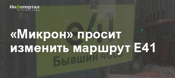 ЭКСКЛЮЗИВ «Микрон» просит изменить маршрут Е41 для своих сотрудников, которые добираются на работу из Москвы. Сотрудники предприятия надеются, что инициативу поддержат работники и других предприятий Северной промзоны — тогда ее рассмотрят в департаменте транспорта. Подробности в публикации Инфопортала. подписаться / обсудить в чате