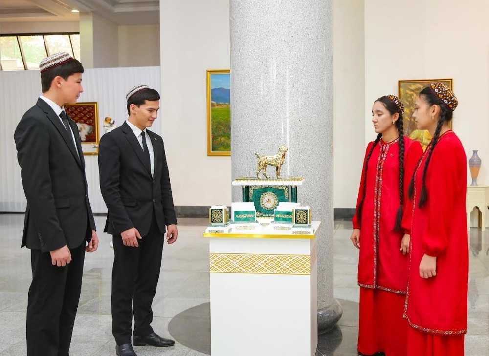Туркменский алабай — национальное достояние, символ мужества и верности, который вызывает огромный интерес в мире. В честь этой важнейшей национальной ценности, а также в рамках «Международного года мира и доверия», 15 октября в Выставочном зале Государственной академии художеств Туркменистана состоялось открытие тематической выставки. В экспозиции были представлены работы мастеров-преподавателей и талантливых студентов Академии, охватывающие все направления искусства. В представленных произведениях — живописи, скульптуре, коврах, керамике, ювелирных изделиях, дизайне и анимации — искусно передан образ алабая: бесстрашного хранителя домашнего очага и преданного друга. Художественные работы подчеркивают историческую значимость алабая, о которой писал Герой Аркадаг в своей книге «Туркменский алабай», отмечая его роль как верного защитника. Образ алабая имеет глубокие исторические корни. Это подтверждают изображения собак, найденные на древних туркменских коврах, и терракотовая статуэтка