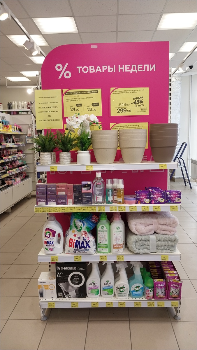 Приветствую вас, мои дорогие друзья и подписчики. В Магнит Косметик началась новая неделя скидок с 15 октября. Покажу вам витрину с товарами со скидкой по карте. Магазин находится по адресу Ростовская область, Зерноградский район, станица Мечетинская, улица Ленина, 50 Искусственное растение Орхидея 37 см цена со скидкой по карте 799.99 рублей. Искусственное растение папоротник 25 см цена со скидкой по карте 399.99 рублей. Горшок для цветов Мокка 20 см цена со скидкой по карте 249.99 рублей. Неделя скидок продлится до 21 октября 2025 года. Дневной и ночной крем лифтинг для лица антивозрастной 46+ Чёрный Жемчуг 50 мл цена со скидкой по карте 249.99 рублей. Дневной и ночной крем для лица Ретинол Черный Жемчуг 56+ интенсивное омоложение цена со скидкой по карте 249.99 рублей. Дневной крем для лица питательный с коллагеном 25+ Чёрный Жемчуг 46 мл цена со скидкой по карте 249.99 рублей. Крем для лица ночной Черный Жемчуг 60+ цена со скидкой по карте 249.99 рублей. Крем для век К