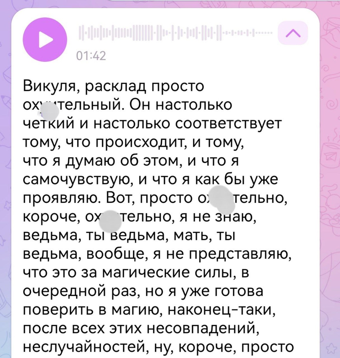 Отзыв, откровенный, емкий, зато очень искренний. Спасибо, драгоценные, что делитесь своими впечатлениями и историями после раскладов ✨❤️❤️❤️❤️