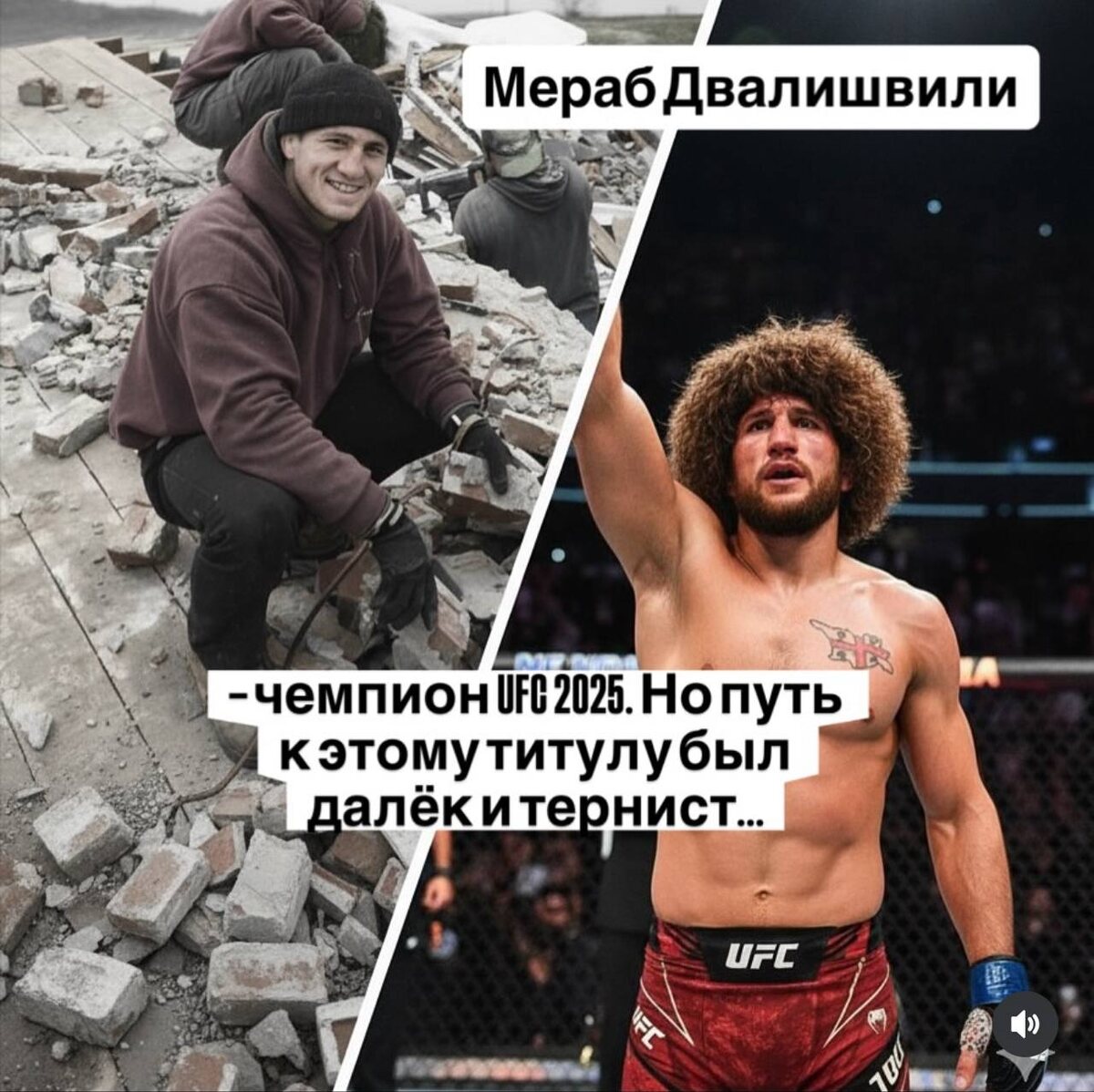 Мераб Двалишвили: не герой «глянца», а человек из бетона и крови ⸻ 🧱 История без фильтров Он действительно таскал кирпичи — не ради контента, не ради лайков, а потому что другого выхода не было. Приехав в США, он жил от зала до зала, от тренировок к стройке — спрашивал себя, выдержит ли ещё один день. Он не был этим «идеальным бойцом», которого рисуют истории успеха. Он воспламенялся гневом, конфликтовал с болельщиками и порой превращал Instagram в поле битвы с хейтерами. Он не всегда был воспитанным: были публичные скандалы, даже угрозы — и он не делал вид, что всё идеально. Это часть его правды. ⸻ 🥊 Бой с Петром Яном — экзамен характера Когда он встретился с Петром Яном, это был не просто титульный бой. Это был момент, где маленькая ссора или ошибка могли убрать весь его труд. Пять раундов ада, где было не до красивых ударов — выдержка важнее всего. И он выдержал. ⸻ 🔍 Несколько фактов, которые не озвучивают в глянцевых историях • Мераб признавал, что социальные сети давили