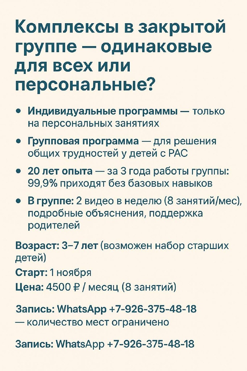 2️⃣ А программа в закрытой группе разработана для решения основных трудностей, которые встречаются у большинства детей с РАС:
